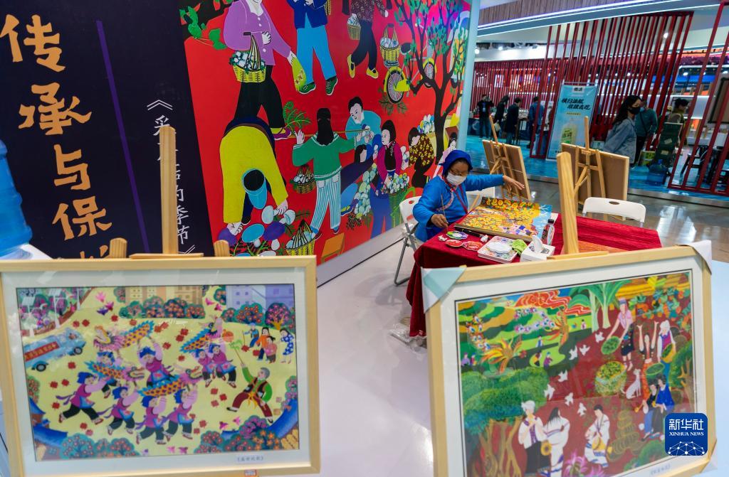 3月24日,農民畫家劉瓊麗帶著自己的作品在首屆云南昆明(國際)版權博覽會上。