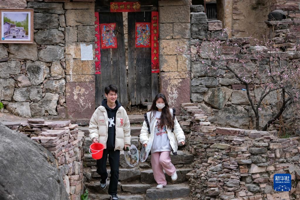 3月24日,來自鄭州市信息技術學校的學生在高家臺村寫生。