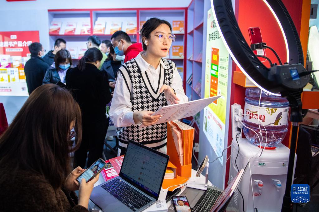 3月24日,在湖南國際會展中心,主播在直播推銷圖書。