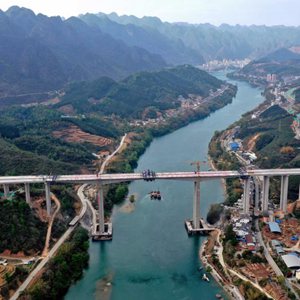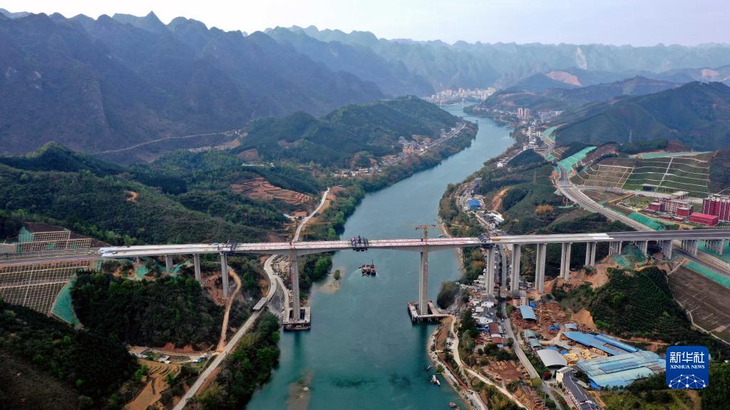 當日,由廣西交通投資集團投資建設、中交二航局承建的廣西最大跨徑六車道連續剛構橋——天峨至巴馬高速公路(簡稱天巴高速)紅水河特大橋實現雙幅合龍。紅水河特大橋是天巴高速項目的控制性工程,位于廣西河池市天峨縣六排鎮紅水河上游,全長1099米。