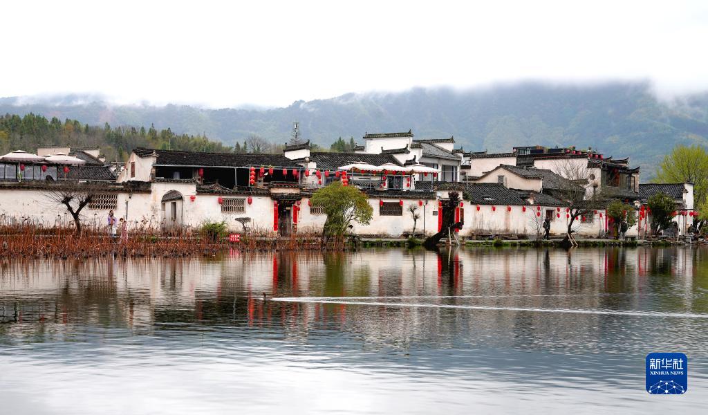 仲春時節,細雨如煙,安徽省黃山市黟縣處處春意盎然,田園花海與鱗次櫛比的徽派建筑相映成趣,游人徜徉其間,感受詩情畫意的生態鄉村。