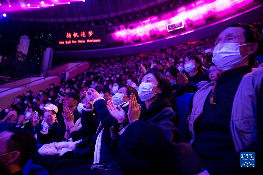 3月24日,觀眾在第十四屆武漢國際雜技藝術節開幕式上觀看《英雄之城》。