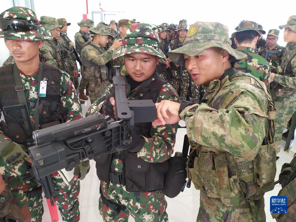3月24日,在柬埔寨王家軍某訓練基地,中柬參演官兵開展裝備操作訓練,熟悉了解對方武器裝備性能。