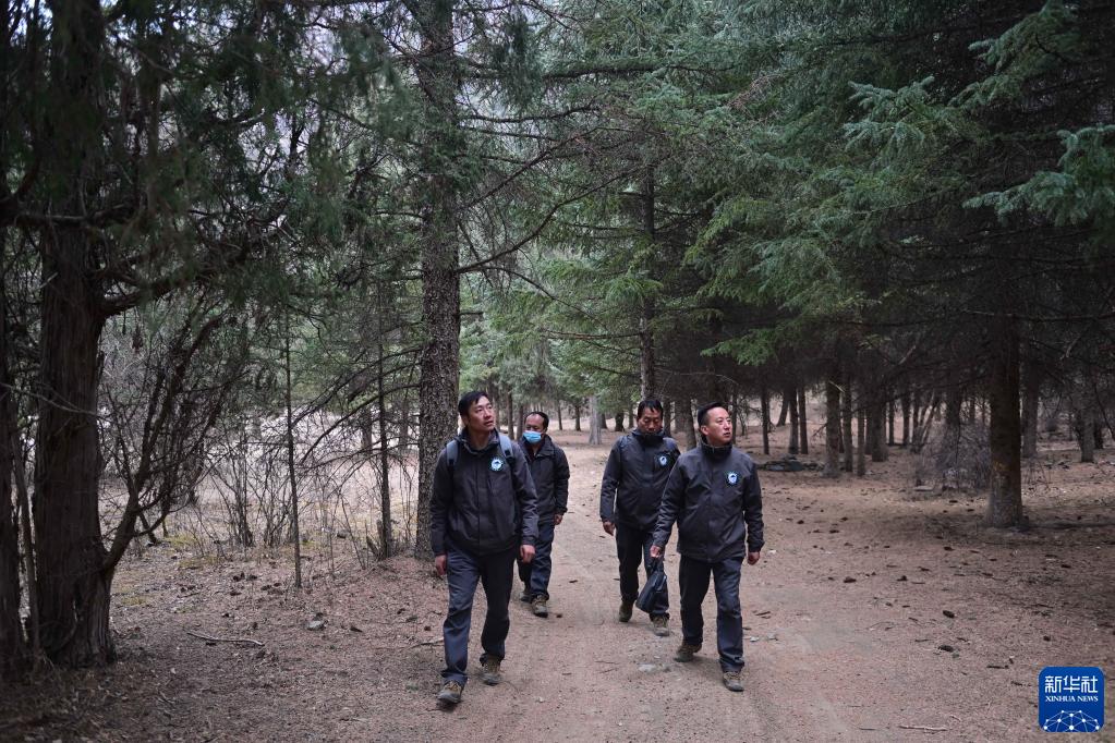 3月24日,在青海省黃南藏族自治州麥秀林場,護林員在巡護林區。