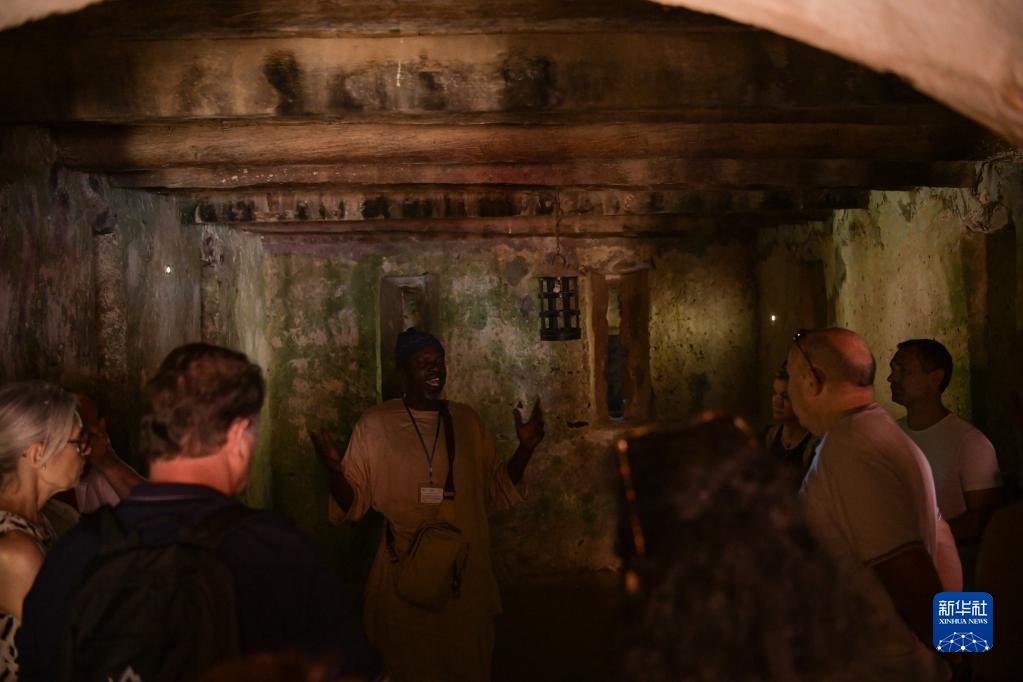 3月23日,導游在塞內加爾戈雷島奴隸博物館講解。