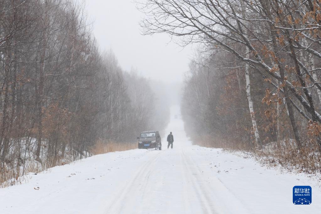 3月22日,在中國龍江森工集團沾河林業局有限公司施業區,王劉洋駕駛的車輛在進山的途中掉入路邊溝中,王學堂下車查看情況。