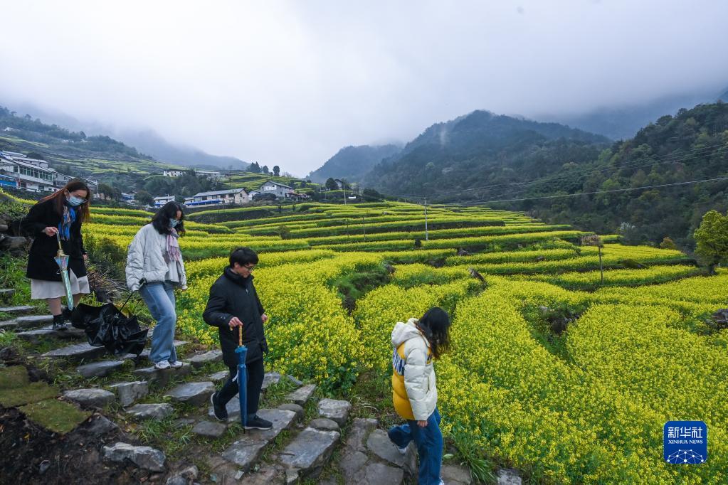 近日,浙江省建德市乾潭鎮海拔400多米的邵家村胥嶺自然村梯田油菜花紛紛盛開,當地舉辦以“花田有喜·同心共富”為主題的胥嶺花朝節,吸引了各地游客前來觀賞山村春季美景,共享春日美好時光。