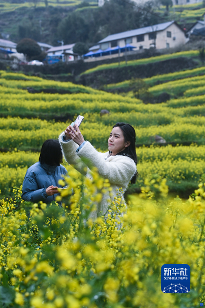 近日,浙江省建德市乾潭鎮海拔400多米的邵家村胥嶺自然村梯田油菜花紛紛盛開,當地舉辦以“花田有喜·同心共富”為主題的胥嶺花朝節,吸引了各地游客前來觀賞山村春季美景,共享春日美好時光。