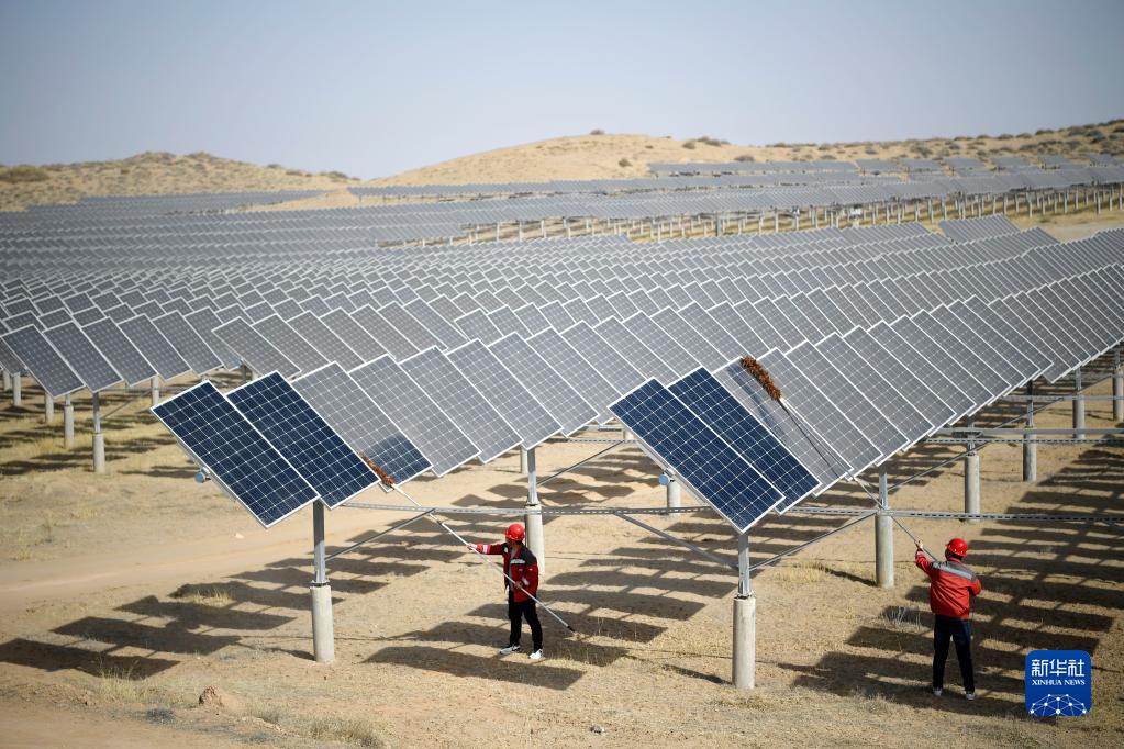 寧夏銀川近日迎來大風沙塵天氣。沙塵過后,為確保沙漠光伏發電項目安全、穩定運行,國網銀川供電公司聯合轄區光伏電站,開展排查線路及變壓器安全隱患、清潔光伏面板等工作,對沙漠光伏項目進行春季“體檢”。