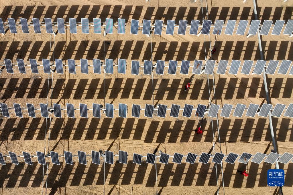 寧夏銀川近日迎來大風沙塵天氣。沙塵過后,為確保沙漠光伏發電項目安全、穩定運行,國網銀川供電公司聯合轄區光伏電站,開展排查線路及變壓器安全隱患、清潔光伏面板等工作,對沙漠光伏項目進行春季“體檢”。