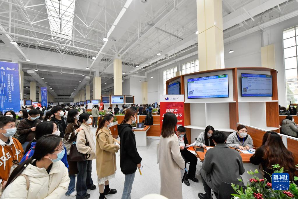 3月25日,應屆畢業生在中國(天津)人力資源發展促進中心求職。