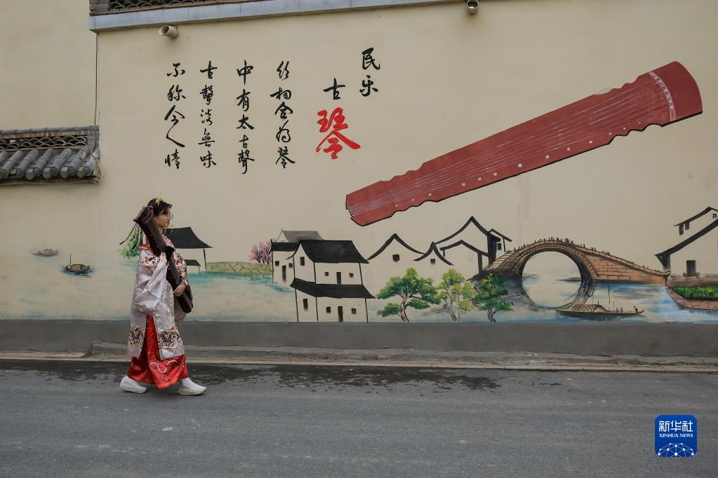 3月25日,一名來自開封市的顧客在徐場村購買古琴。