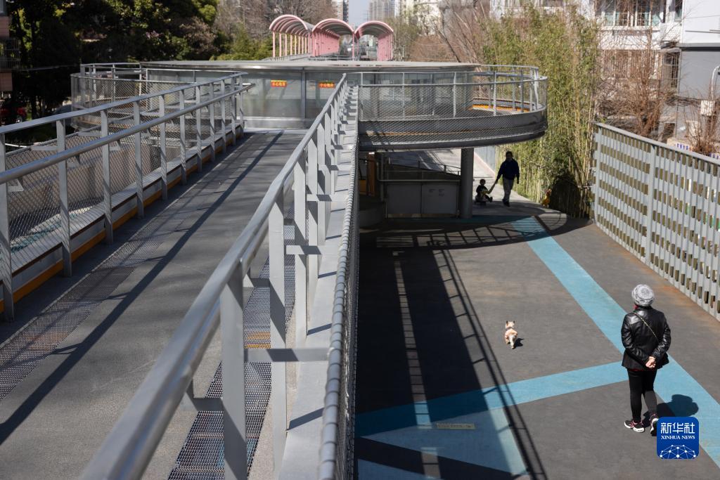3月13日,市民在位于上海市普陀區的高線公園——百禧公園散步。