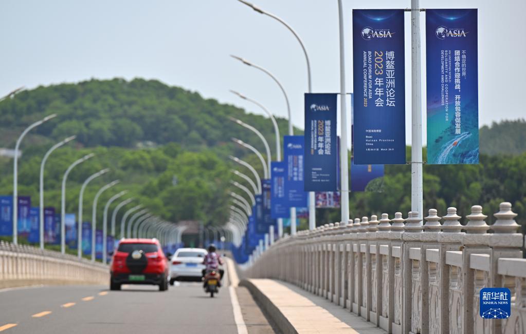 這是博鰲大樂大橋上的博鰲亞洲論壇2023年年會主題宣傳牌(3月25日攝)。
