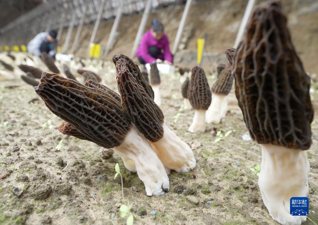 3月25日,河北省昌黎縣泥井鎮一家食用菌培育合作社的社員在采收羊肚菌。