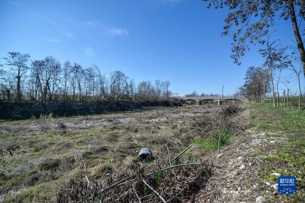 這是3月25日在意大利皮埃蒙特大區拍攝的干涸的杰索河河床。