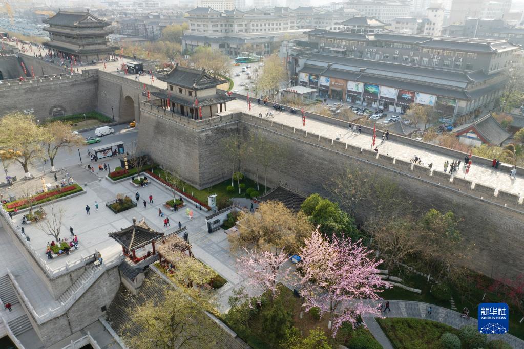 近日,陜西西安明城墻旁春意漸濃,吸引不少市民游客前來踏青。