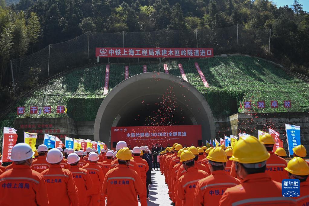 3月26日,杭溫鐵路木匪嶺隧道貫通儀式現場。