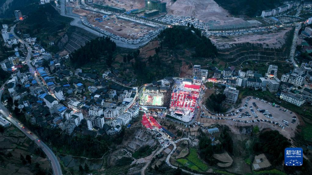這是“村BA”比賽開始前的臺盤村全景(3月26日攝,無人機照片)。