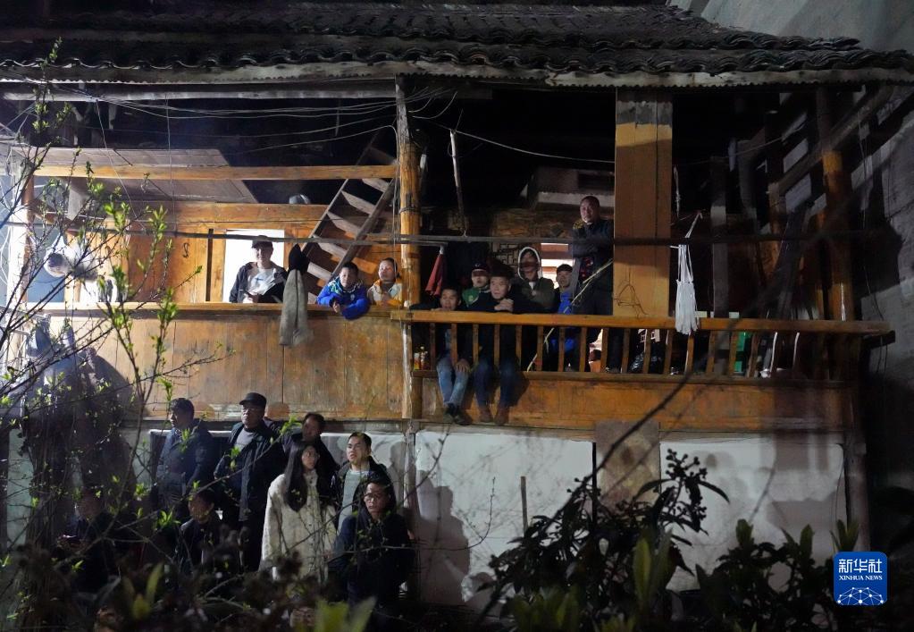 3月26日,“村BA”總決賽賽場外,當地觀眾在居民樓上觀看比賽。