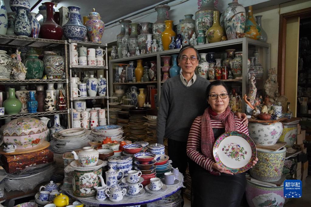 2月24日,粵東磁廠第三代傳人曹志雄與太太在工場合影。新華社記者 呂小煒 攝