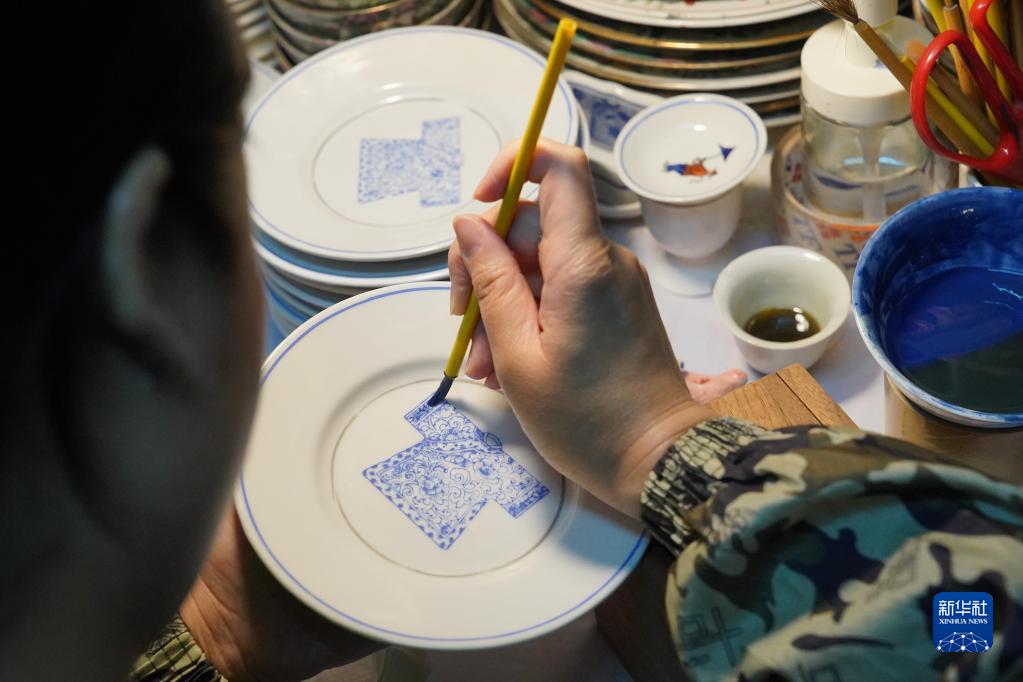 2月24日,廣彩繪工在制作彩瓷。新華社記者 呂小煒 攝