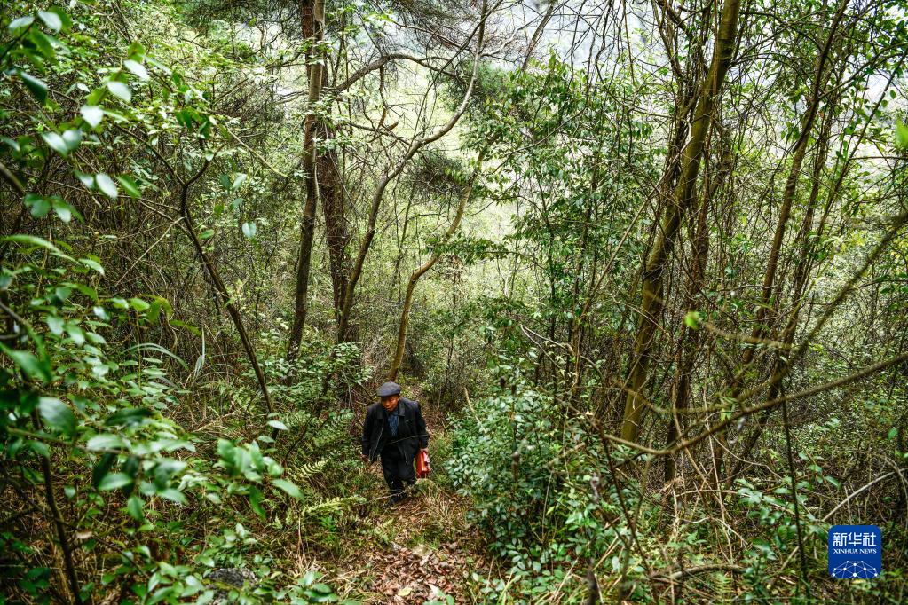 管水員陳光明前往貴定縣盤江鎮馬場河村管護水源途中(3月23日攝)。