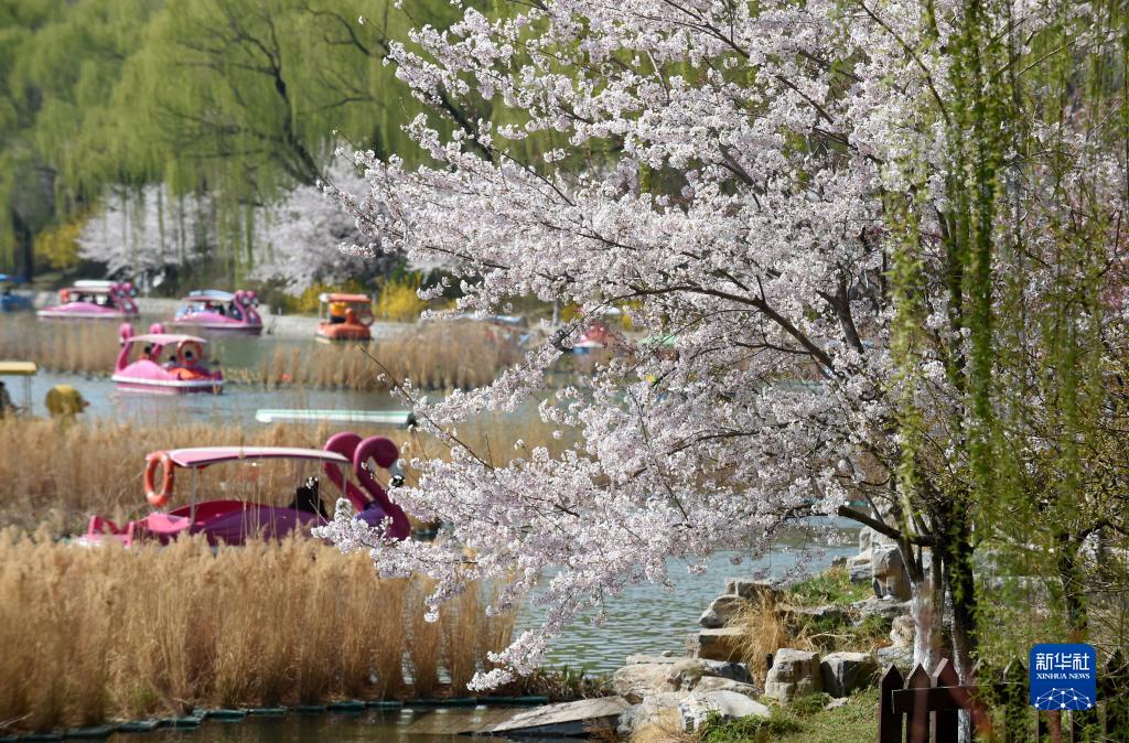 春暖花開,北京玉淵潭公園花紅柳綠,春意濃濃。