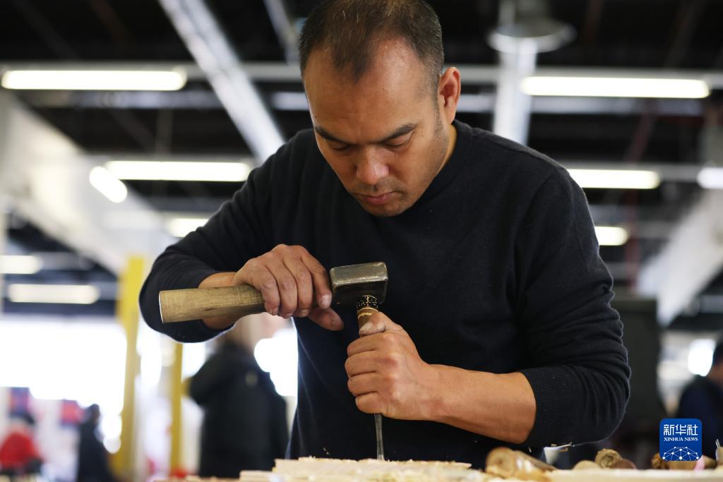 3月25日,在法國梅斯舉行的第十屆國際殘疾人職業技能競賽中,最終獲得銅牌的中國選手吳向東正在參加木雕比賽。
