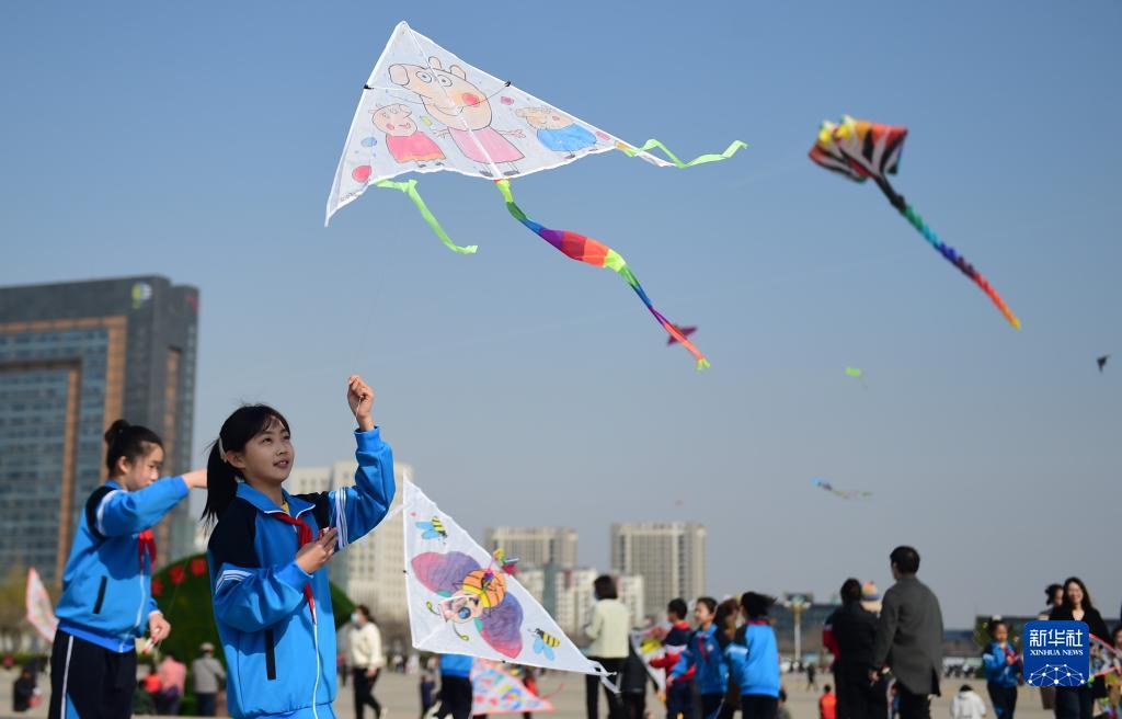 3月26日,在河北滄州渤海新區黃驊市港城產業園區,孩子在放風箏。