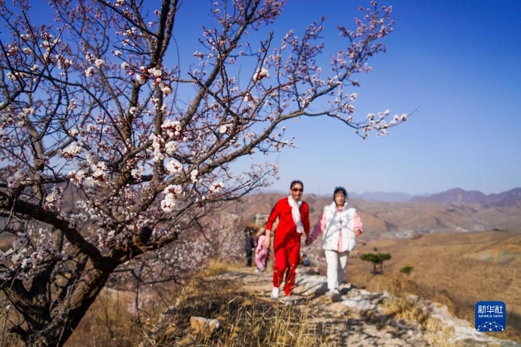 3月26日,游客在河北省遵化市興旺寨鎮花椒園村北的古長城游玩。