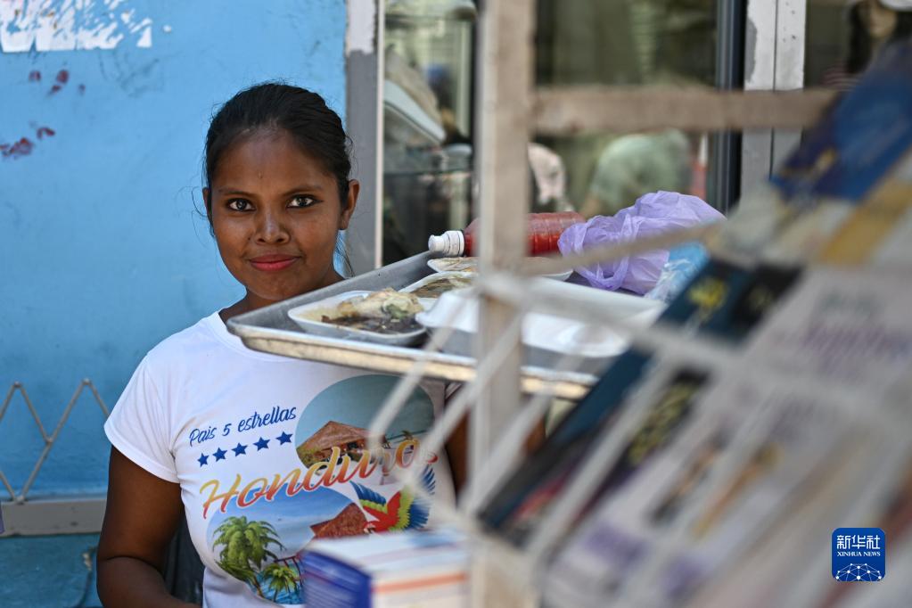 3月26日,一名女子在洪都拉斯首都特古西加爾巴的一處街道上售賣小吃。