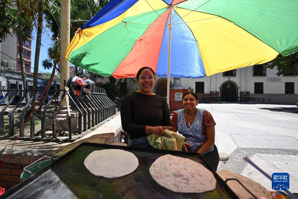 3月26日,在洪都拉斯首都特古西加爾巴,兩名女子制作當地特色的“巴萊達餅”。