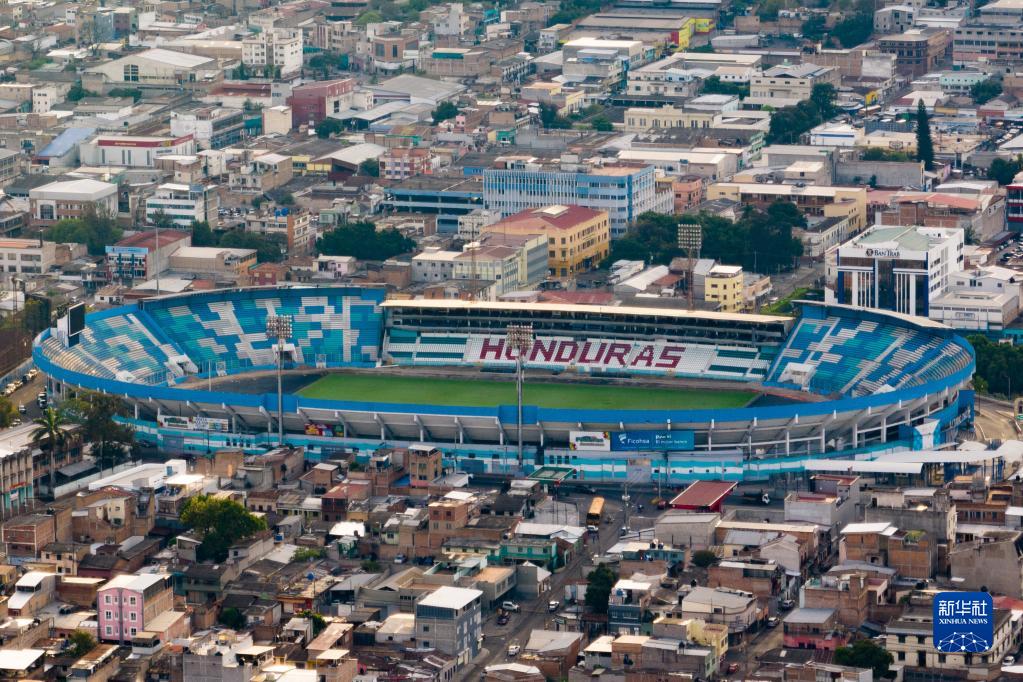 這是3月26日在洪都拉斯首都特古西加爾巴拍攝的國家體育場(無人機照片)。