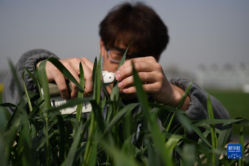 3月26日,在皖中綜合試驗站內,安徽農業大學農學院的學生在測量小麥的生長指標。