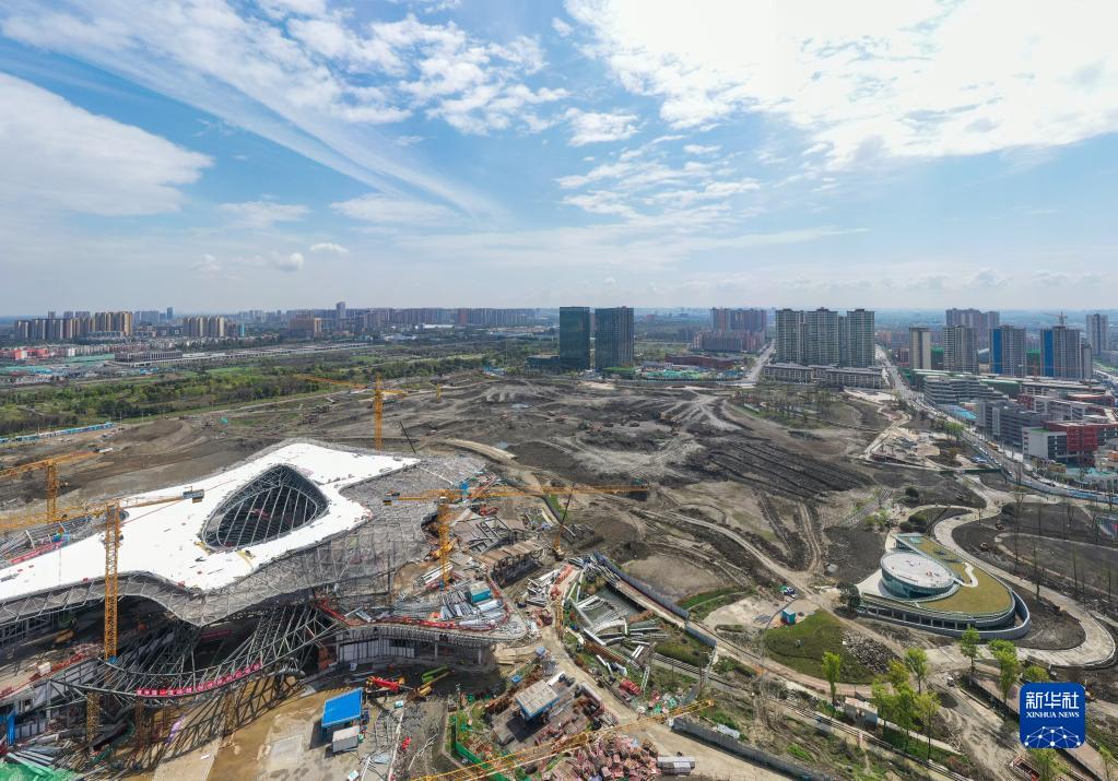 這是3月27日在四川省成都市郫都區拍攝的世界科幻公園建設現場(無人機照片)。