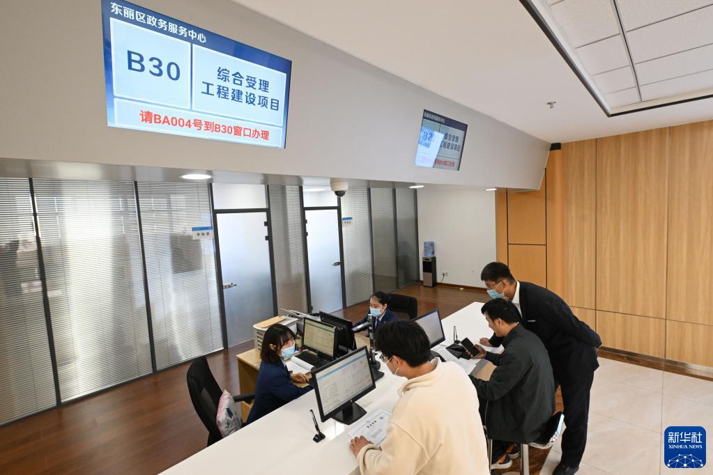 3月27日,在天津市東麗區政務服務中心,申報人員進行“填空式”項目申報。