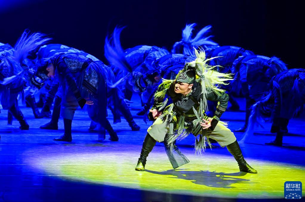 3月27日,內蒙古自治區直屬烏蘭牧騎參賽演員表演群舞《風之馬》。
