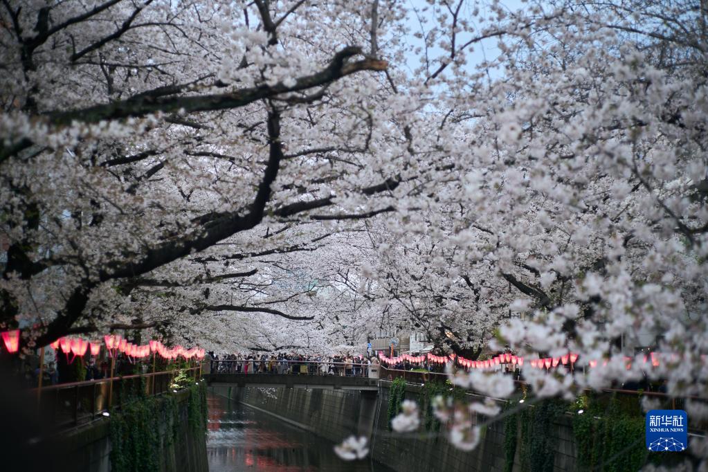 近日,東京進入櫻花季,不少民眾來到東京著名賞櫻點目黑川觀賞櫻花。