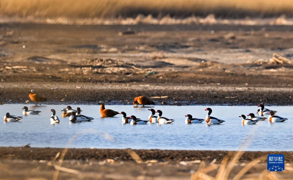 3月27日,候鳥在孟家段國家濕地公園覓食。