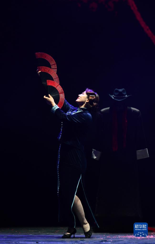 3月27日晚,在位于山東省濟南市的山東劇院,演員表演魔術節目《扇變》。