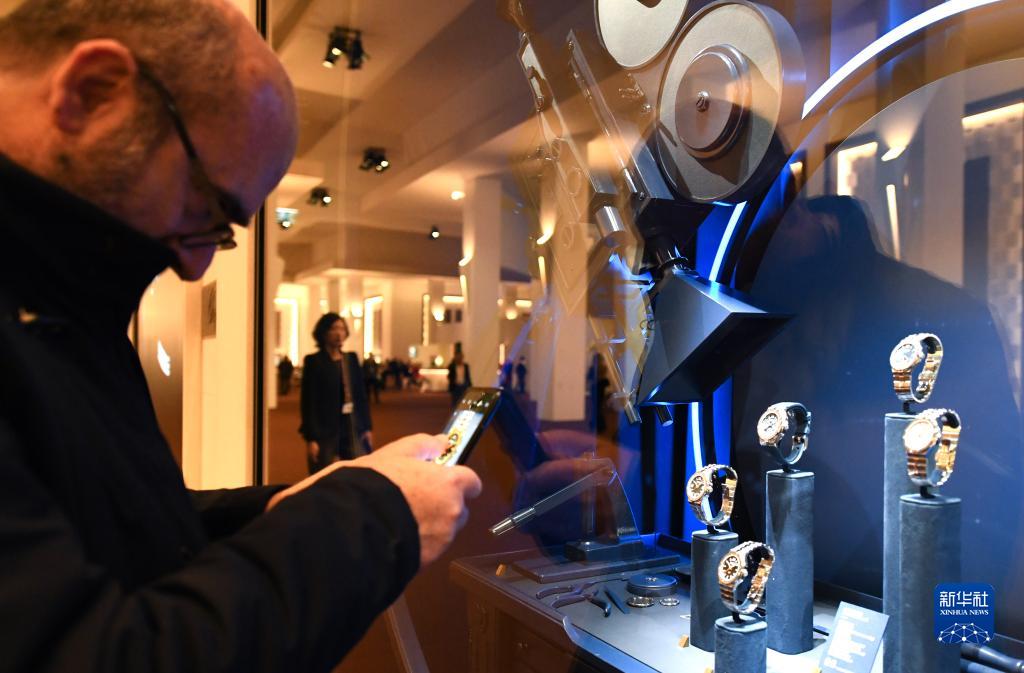 3月27日,在瑞士日內瓦,一名男子在“鐘表與奇跡”高級鐘表展上參觀。