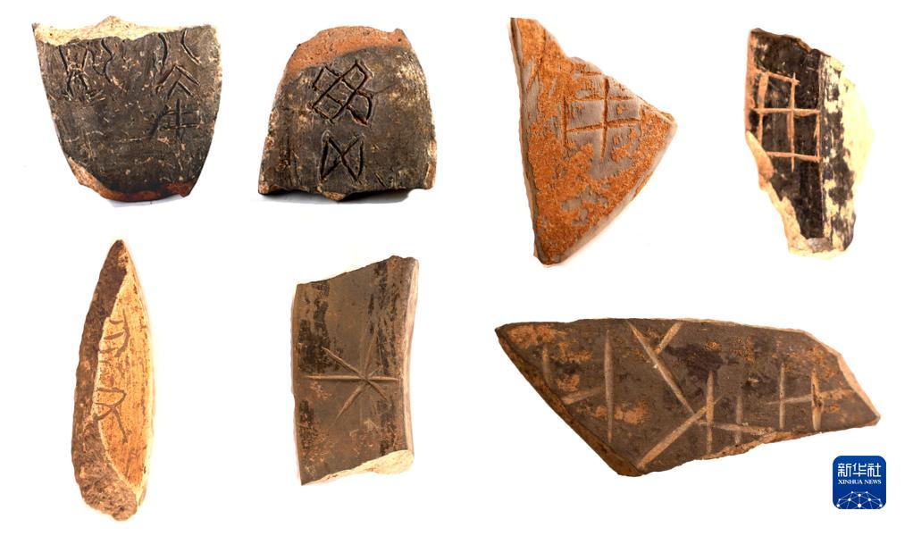 陜西旬邑西頭遺址出土的陶器刻劃符號與陶文(資料照片)。