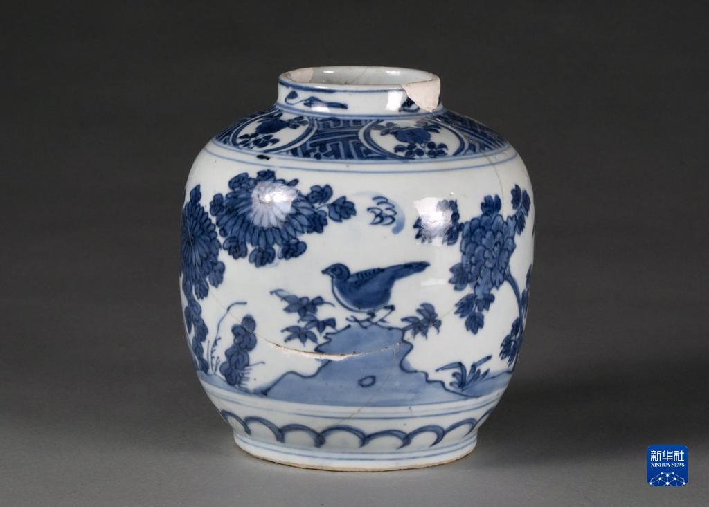 河南開封州橋及附近汴河遺址出土的明晚期景德鎮窯青花花卉紋罐(資料照片)。