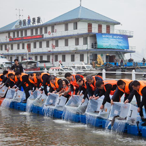 當日是中華鱘保護日,武漢漁政碼頭和軍山碼頭分別舉行中華鱘放流活動。