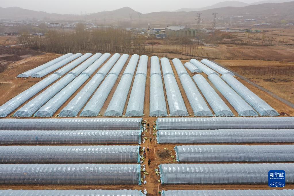 河北省灤州市九百戶鎮一處紅薯育苗基地(3月28日攝,無人機照片)。