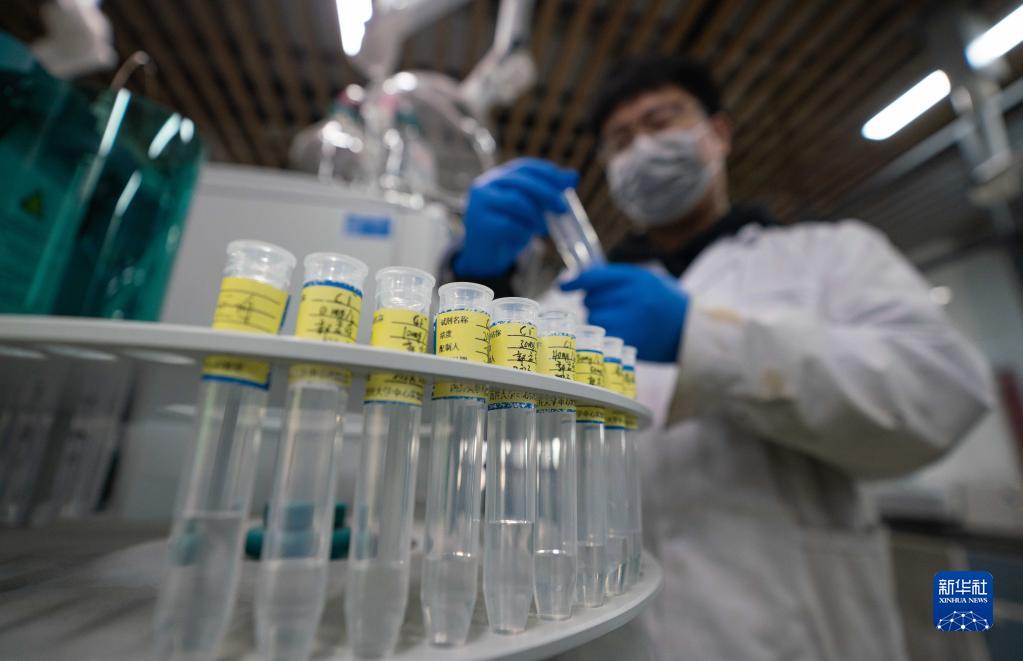 3月28日,南開大學—滄州渤海新區綠色化工研究院分析檢測中心工作人員在進行樣品檢測前的準備工作。