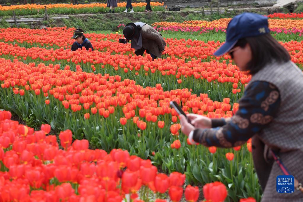 近日,浙江省金華市浦江縣杭坪鎮烏漿村100畝郁金香盛開,吸引不少游客前來觀賞。這片閑置土地由回鄉創業的鄉賢開發,打造成花海,免費向游客開放,這里還提供鮮切花訂購服務,幫助周邊農戶增收。