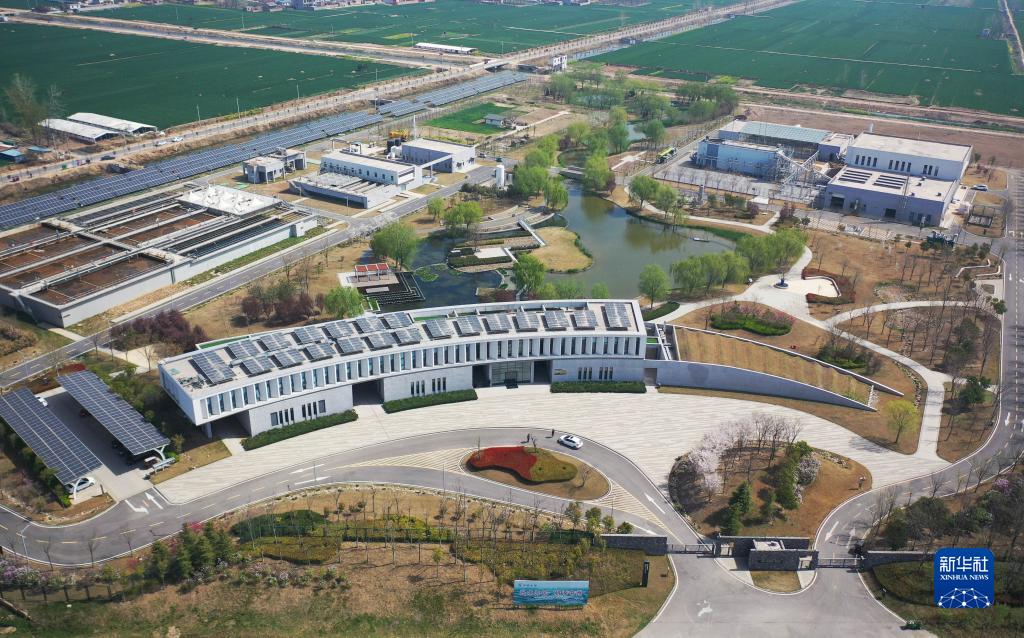 這是3月28日在河南省商丘市睢縣拍攝的睢縣第三污水處理廠(無人機照片)。