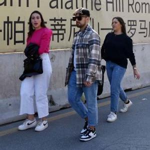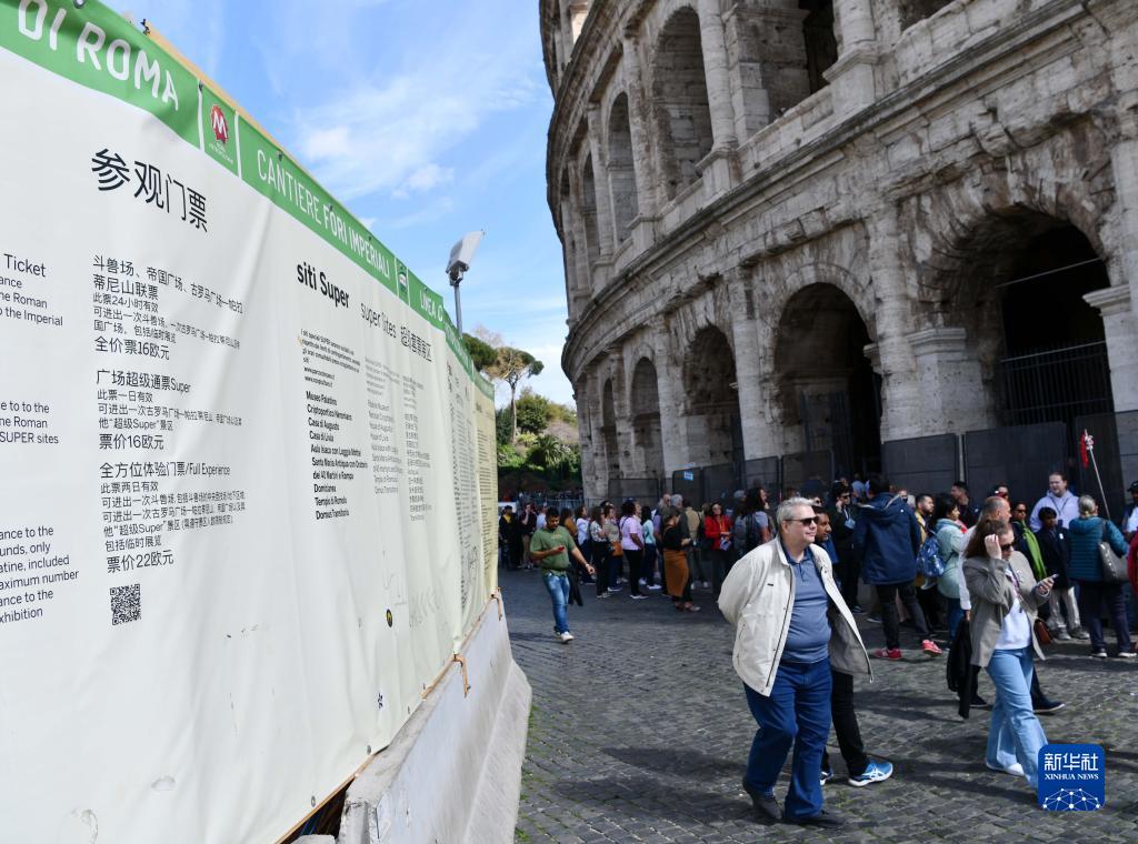 3月26日,游客走過意大利羅馬斗獸場的中文指示牌。